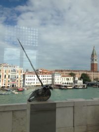 Am uitat să spun că tot în toamna lui 2017, dar în septembrie, am ajuns cu tatăl meu Domițian la Veneția, aveam acolo ceva de făcut în legătură cu bunicul meu patern, padre Basilio, mort în exil, la Roma. Iar la Veneția am dat peste magnifica expoziție Treasures from the Wreck of the Unbelievable, gândită și corporalizată de unul din performerii în artele plastice de acum, Damien Hirst. Eram fană Hirst din 1999, apoi am fost destui ani dezamăgită de Hirst și de artefactele lui kitsch. Dar expoziția venețiană, găzduită în două clădiri – Punta della Dogana și Palazzo Grassi – m-a recucerit. Titlul expoziției, tradus în românește de o prietenă firoscoasă de-a mea, Cosana, suna de fapt așa: Comori din Epava Necrezutelor. O formulă care ar face pe oricine să fantasmeze și să aiurească la nesfârșit. Ei, bine, în teribila expoziție a lui Hirst se găseau și câteva instalații ori ansambluri obiectuale care reprezentau licorne, după cum urmează, drept care tatăl meu mi-a șoptit amuzat că licornele m-au urmărit până în lagună. Licornele era expuse pe terasele închise ale clădirii Punta della Dogana (imediat după biserica mea favorită de pe Canal Grande, anume Santa Maria della Salute), după pereți de sticlă, și erau confecționate din argint aurit, argint și fier. Licorna aurită era orientată să vegheze Canal Grande și din cornul ei se zărea atât o bucățică din Piazza San Marco, cât și una din insulele mele favorite în lagună – San Giorgio Maggiore (din campanila de aici se zărește cea mai tulburătoare Veneție de sus!). Licorna din fier era orientată spre insula Giudecca, iar cornul ei indica biserica Il Redentore. Licorna din argint era orientată spre micile palate de pe Canal Grande, imediat după Hotel Monaco & Grand Canal și Ca’Giustinian. În Palazzo Grassi, situat față în față cu Ca’ Rezzonico, Damien Hirst adăpostise un desen fin cu inorog, apoi un așa-zis craniu de inorog confecționat din cristal și replica sa presupusă a fi fost extrasă din ocean, ceea ce era o minunată făcătură din poliester, aluminiu și lumină acrilică. Tatăl meu Domițian a glosat, mai apoi, ritualic pe ideea că licornele mă urmăresc oriunde aș merge, pas cu pas.